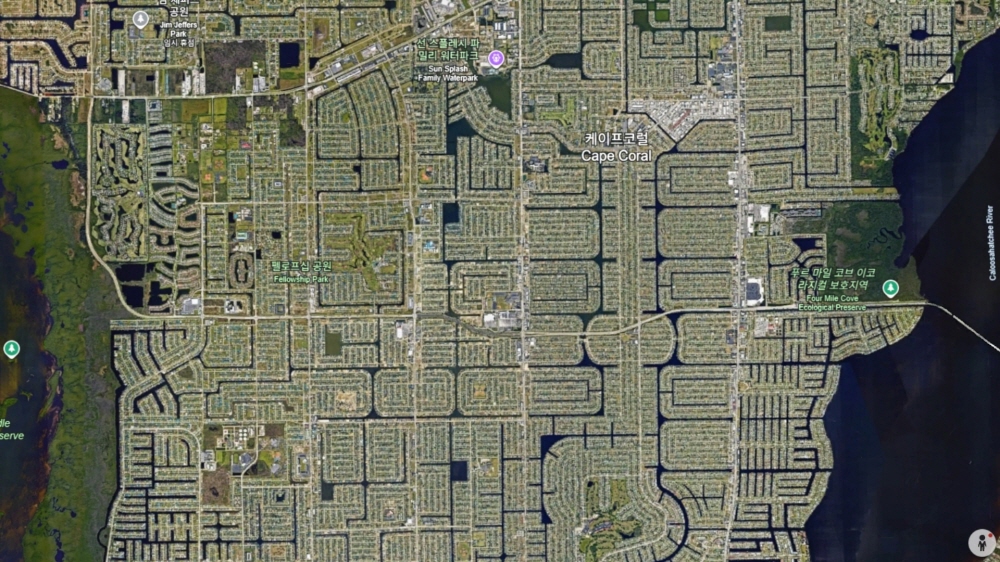 정리하자면, 케이프코럴은 인간이 습지와 늪지를 재설계해 만든 거대한 운하 도시입니다.