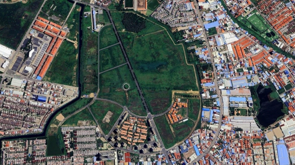 구글 어스와 위성사진을 보면, 남쪽 지역엔 기성 건물이 들어서 있고, 북쪽 대부분은 미개발 토지로 남아 있는 걸 확인할 수 있습니다.