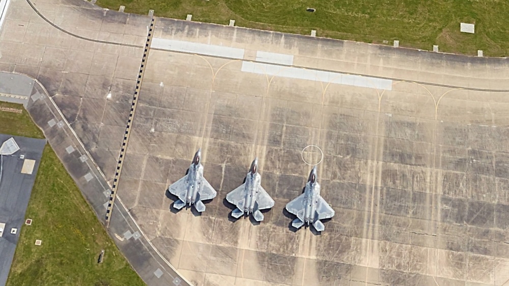 위성으로 본 F-22 기지는 단순한 활주로가 아니라 전략적 플랫폼입니다.