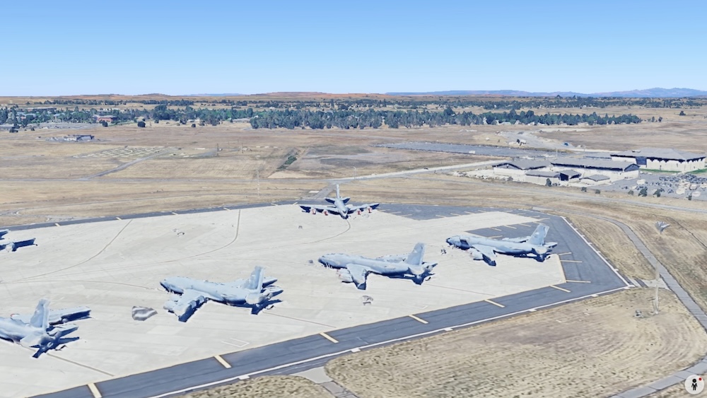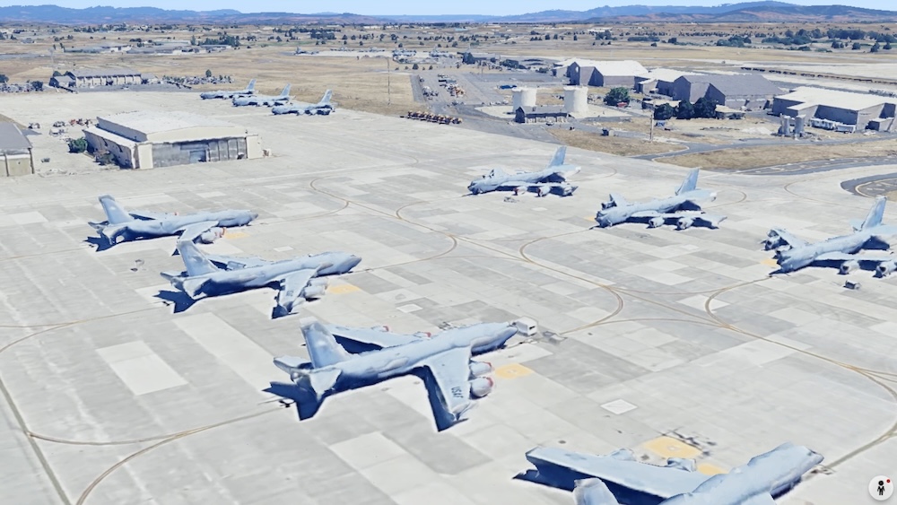 위성으로 보면 대형 활주로와 넓은 공역, 그리고 급유기 전용 격납고가 눈에 띕니다.