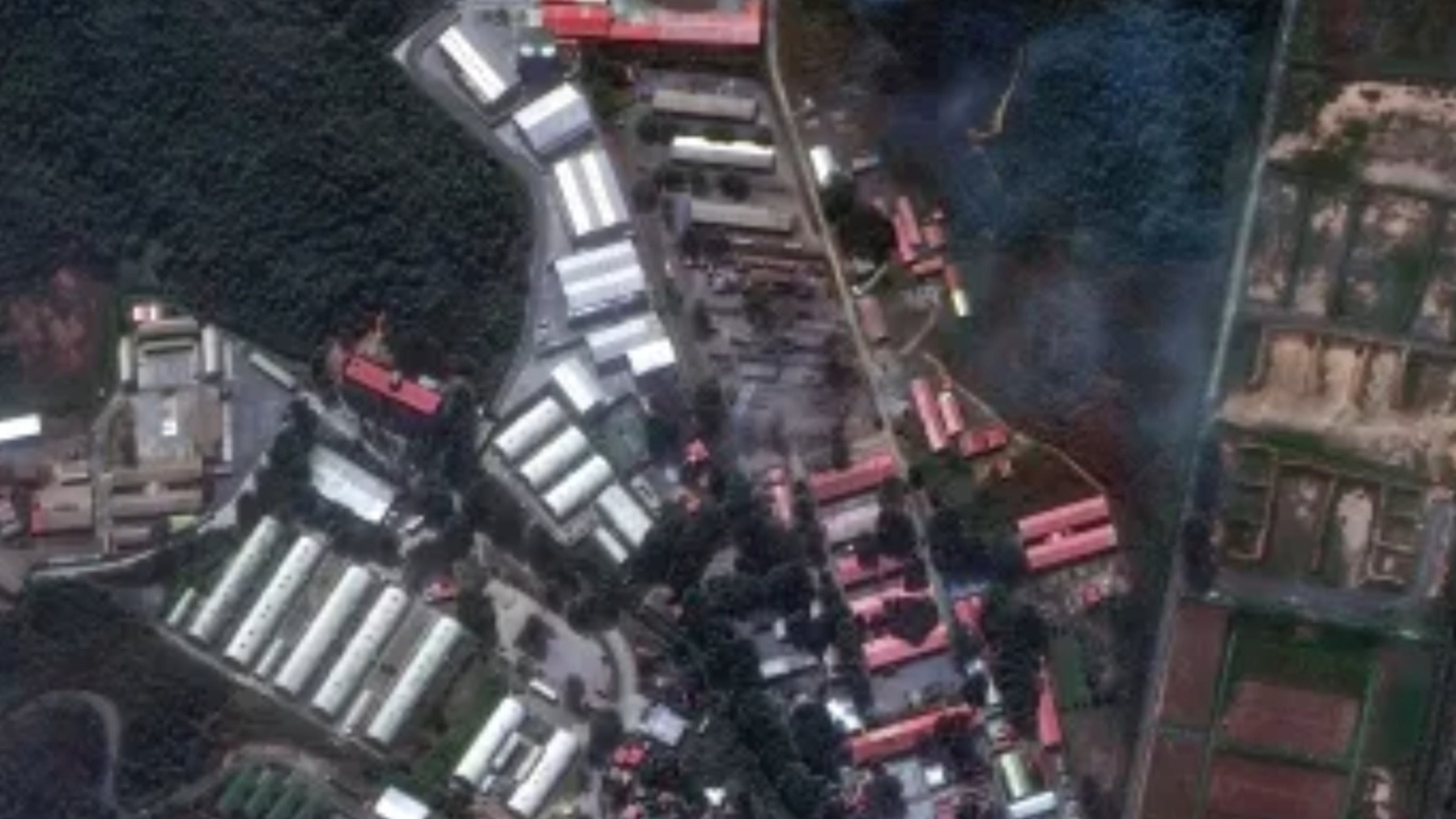 - 분석: 작전 전에는 대형 트레일러 차량들이 주차되어 있었으나, 작전 후에는 잿더미로 변했습니다.