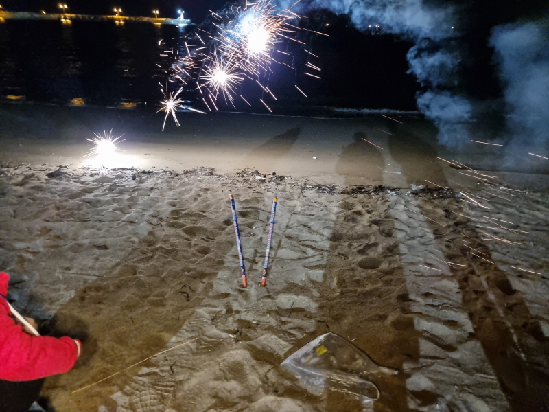 해수욕장에 불꽃놀이를 하러 다녀왔어요~
