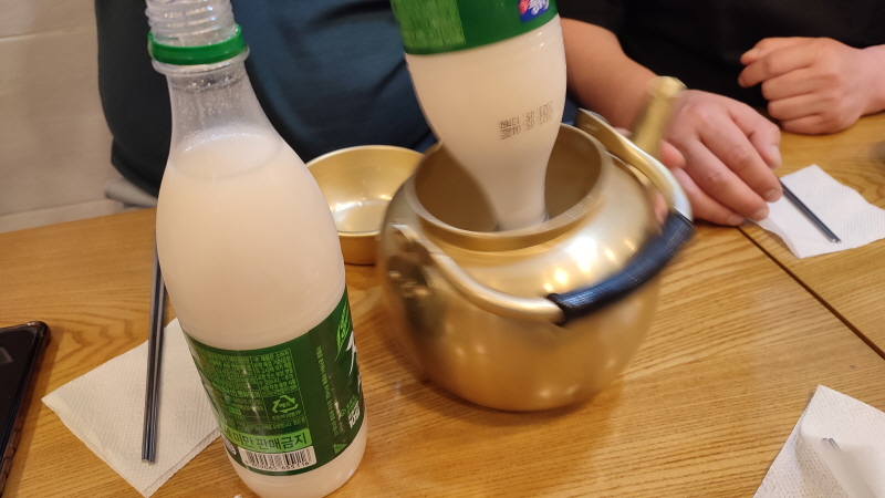 막걸리는 양은주전자에 따라 마셔야 맛있다며