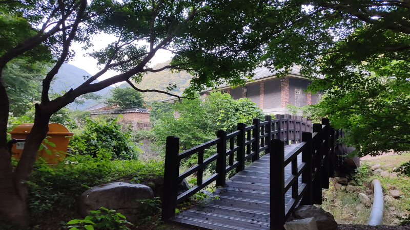 샤워장을 지나 계곡 위의 작은 다리를 건너면