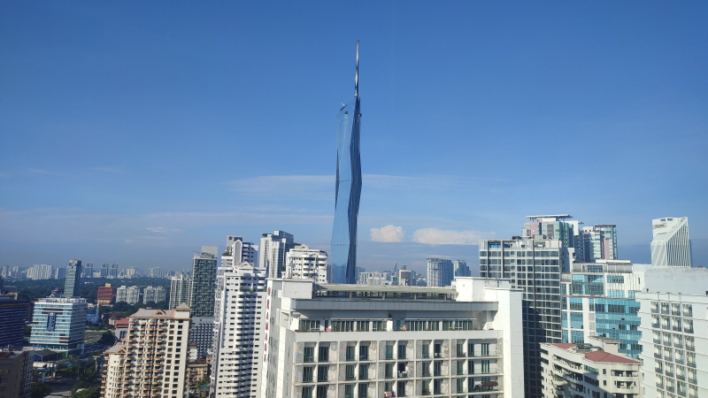 난간 밖으로 내다보니 메르데카118 타워가 보였어요! 메르데카118은 우리나라 삼성물산이 건설하는 세계 2위의 초고층 빌딩으로 높이가 무려 679미터에요. 하지만 상단 첨탑부분의 높이만 187미터라 첨탑을 제외하면 492미터 정도네요. 그래도 두바이의 부르즈칼리파에 이어 세계에서 두번째로 높은 빌딩이라는거~😘